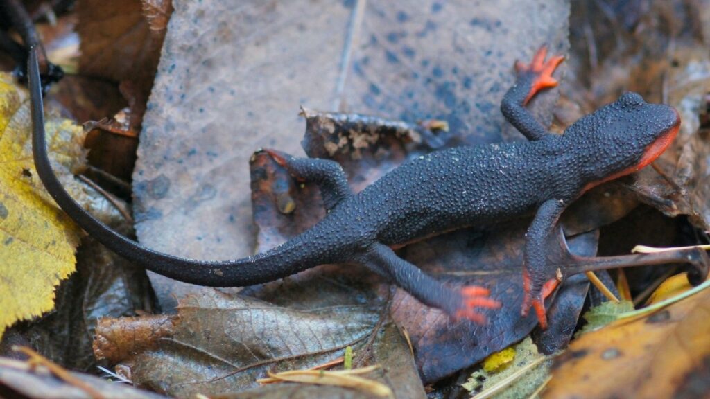 サンショウウオは夜行性で湿潤な環境を好む両生類です。日中は直射日光を避け、落ち葉の下や石の隙間、流木の影など暗く湿った場所でじっとしています。動きは比較的ゆっくりですが、環境に適応する能力が高く、危険を感じると物陰へ素早く身を隠します。