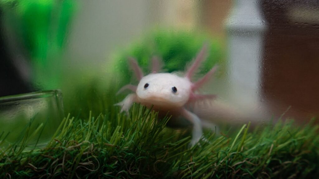 幼生期にはとても愛らしい見た目をしており「 ウーパールーパー 」と呼ばれることで有名です。ウーパールーパーが陸化(変態)すると、行動パターンは大きく変化します。水中生活中心だった頃とは異なり、半陸生〜陸生となり、湿った地面をゆっくり移動する生活へ移行します。基本的には夜行性で、日中は直射日光を避け、流木の下やシェルター、苔の陰など暗く湿度の高い場所でじっとしています。